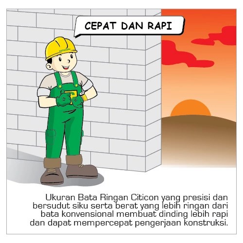 Hal ini membuat proses pemasangan bata ringan Citicon menjadi lebih efisien dan cepat.