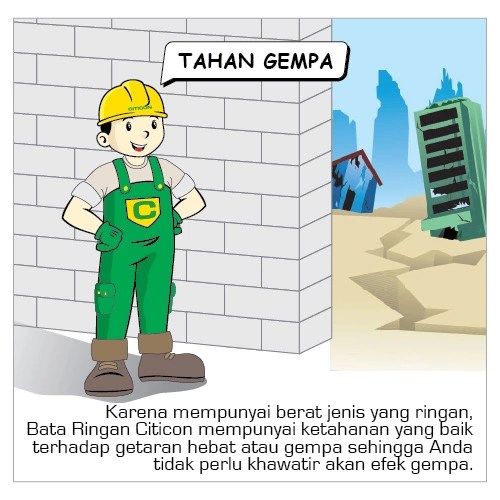 Hal ini menjadikan bata ringan Citicon mampu menahan guncangan saat terjadi gempa, serta mampu menahan panas saat terjadi kebakaran.
